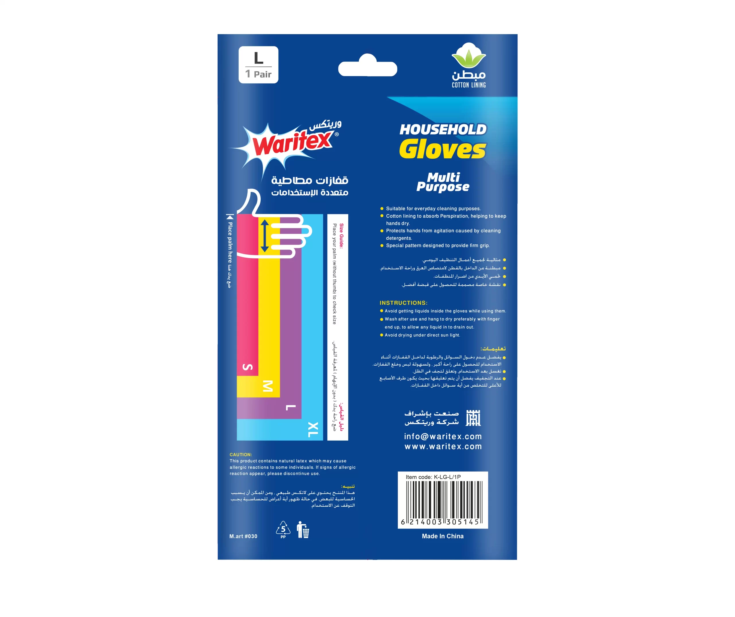 تم تصميم قفازات وريتكس لتمنحك أداءً يدوم طويلًا، بفضل بطانتها القطنية الناعمة التي تمتص العرق وتمنحك تهوية ممتازة، مما يجعلها مريحة حتى مع الاستخدام لفترات طويلة. كما أن الملمس غير القابل للانزلاق يوفر لك تحكمًا مثاليًا، مما يسهل عملية غسل الأطباق، الفرك، والتنظيف العام بكفاءة وسهولة.