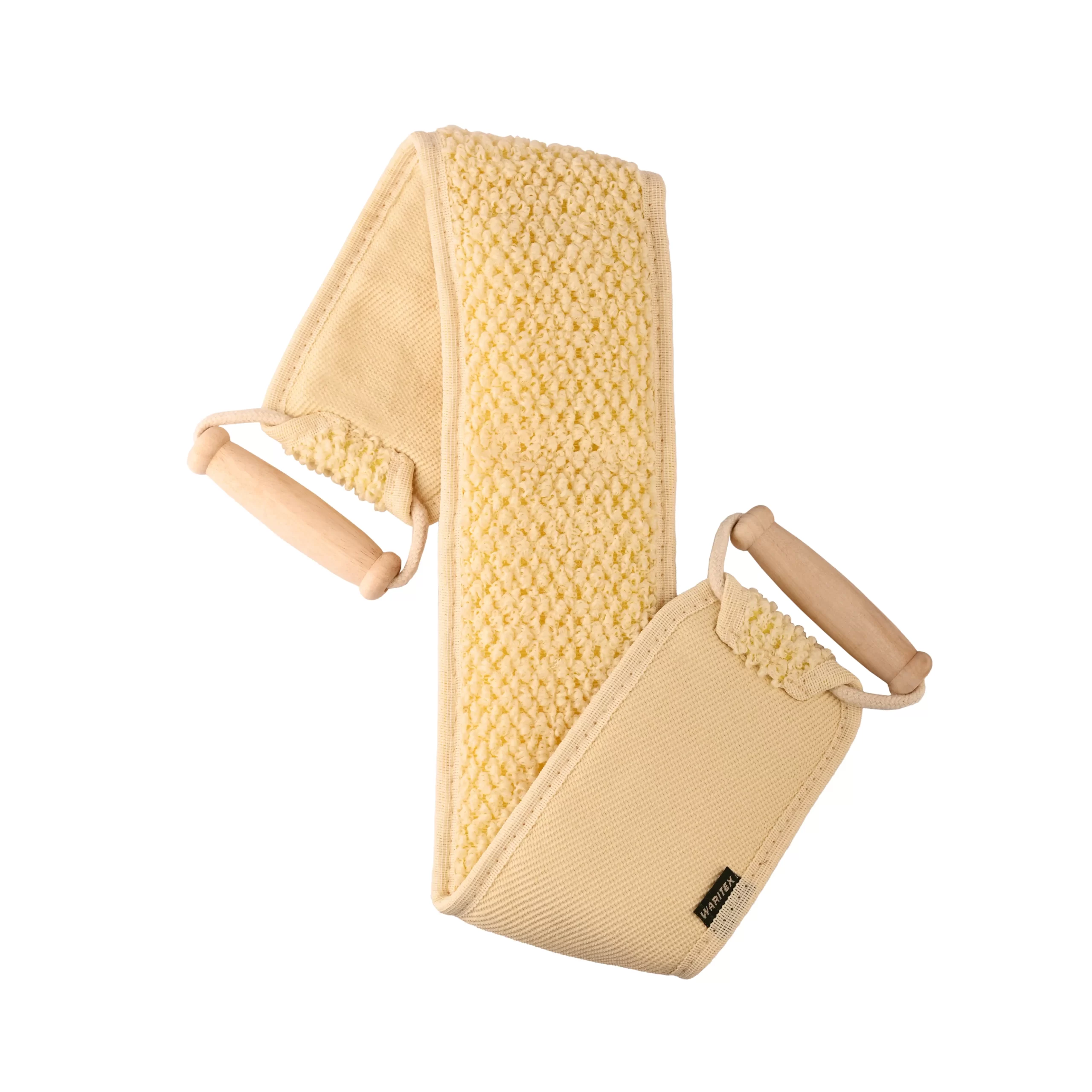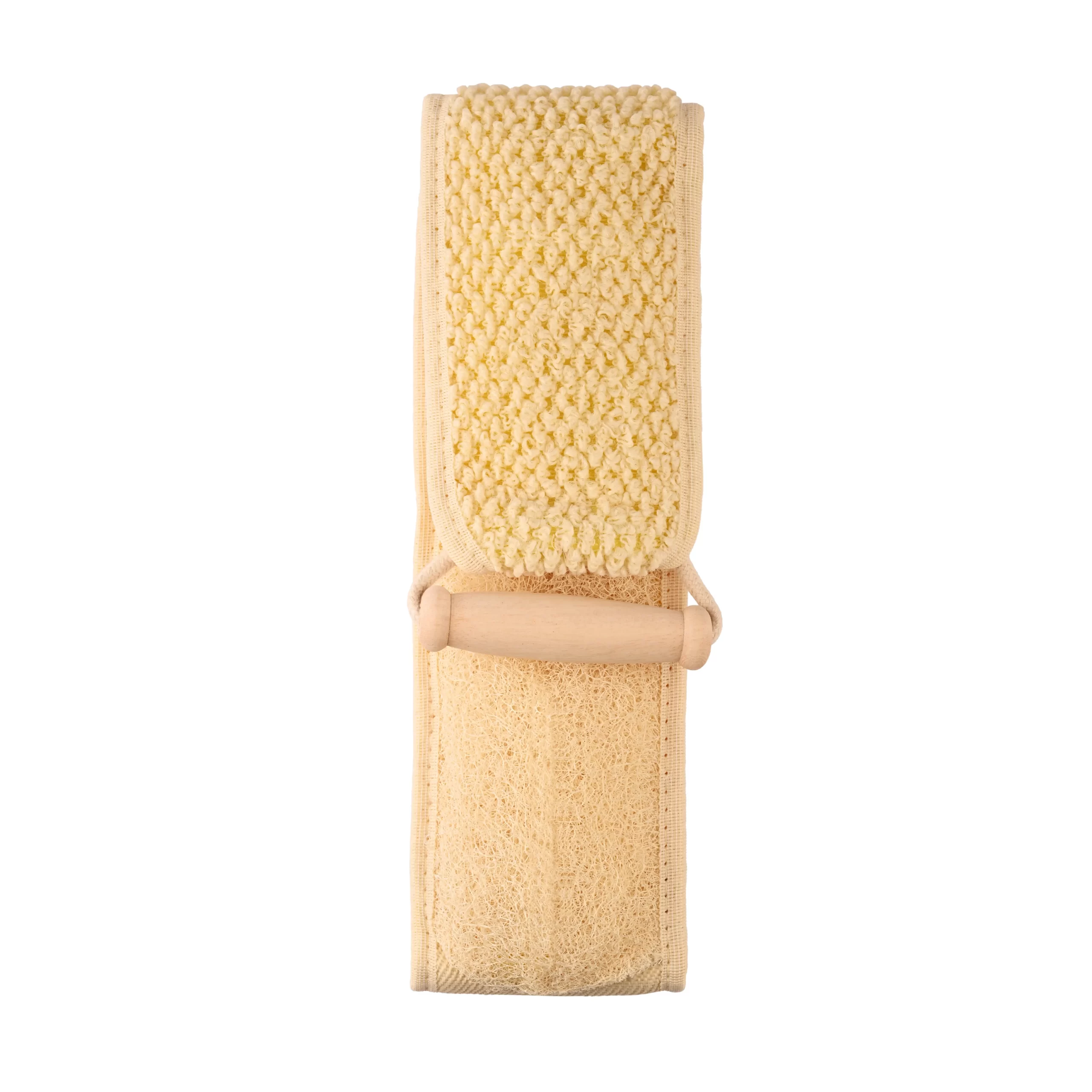 Premium Natural Back Loofah With Massage Side – Strap With Wooden Handle